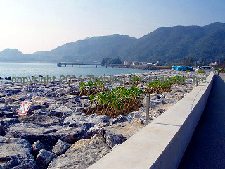 本業務では、新たに設けた植樹帯への緑化(屋部側)と、既設の植樹帯への緑化(安和側)の2箇所が対象地でした。海への眺望確保とそれを演出する配植と、現地の厳しい潮風に適応した樹種の選定に留意し、従来の道路緑化とは一線を画したデザインを実践しました。